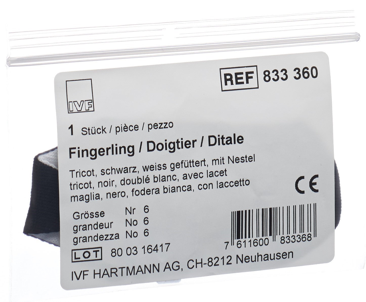 IVF Däumling Tricot Gr6 schwarz GTIN: 7611600833368 MiGeL: 350114111